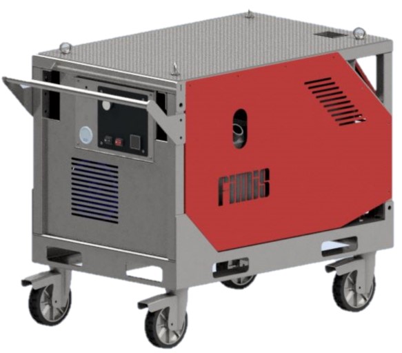 • Idropulitrice industriale ad acqua calda progettata per usi gravosi in ambienti difficili, come industrie siderurgiche e acciaierie, settore navale o delle costruzioni.