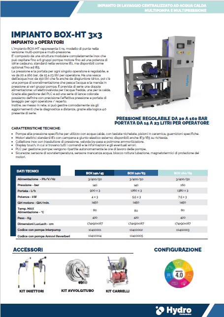 L’impianto BOX-HT rappresenta il ns. modello di punta nella versione multi-pompa e multi-pressione.